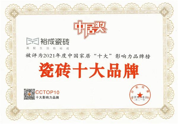 高配荣誉 | 热烈庆祝裕成瓷砖又双叒叕获得“瓷砖十大品牌”!