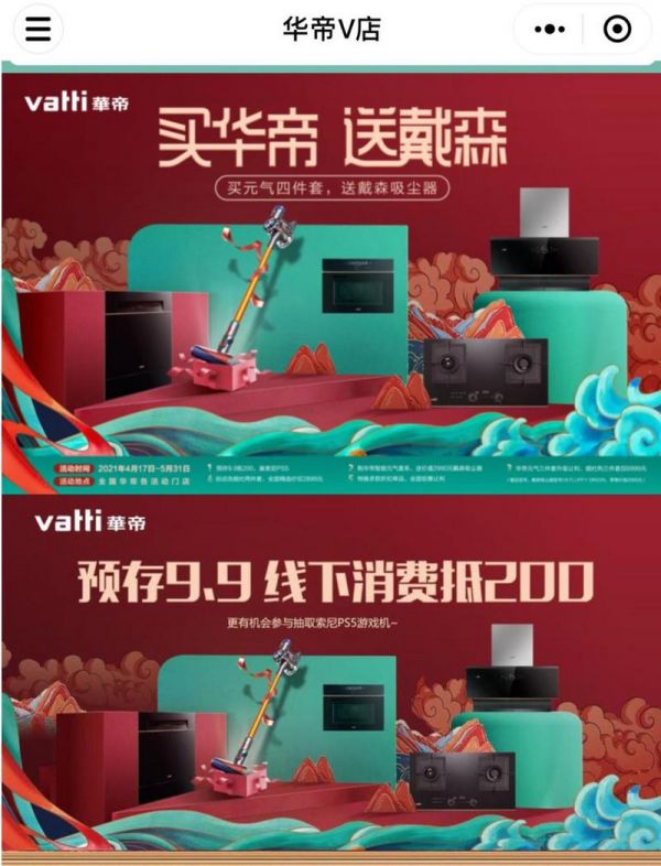 “今年的优惠力度比往年更大、更超值!”华帝相关负责人在接受媒体采访时表示:“买华帝智能元气套系四件套产品就送戴森吸尘器,多款三件套、两件套和单品都有超值优惠价,还有线上小程序可以赢取索尼PS5。这次促销活动从4月17日到5月31日,促销时间比以前长很多,而且还是全国活动门店同时开启活动,规模很宏大,机会不容错过。”