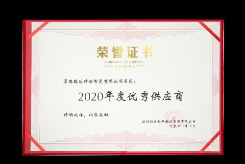 今年3月,景德镇欧神诺陶瓷有限公司获得战略合作伙伴恒大地产集团授予的“2020年度优秀供应商”荣誉称号。