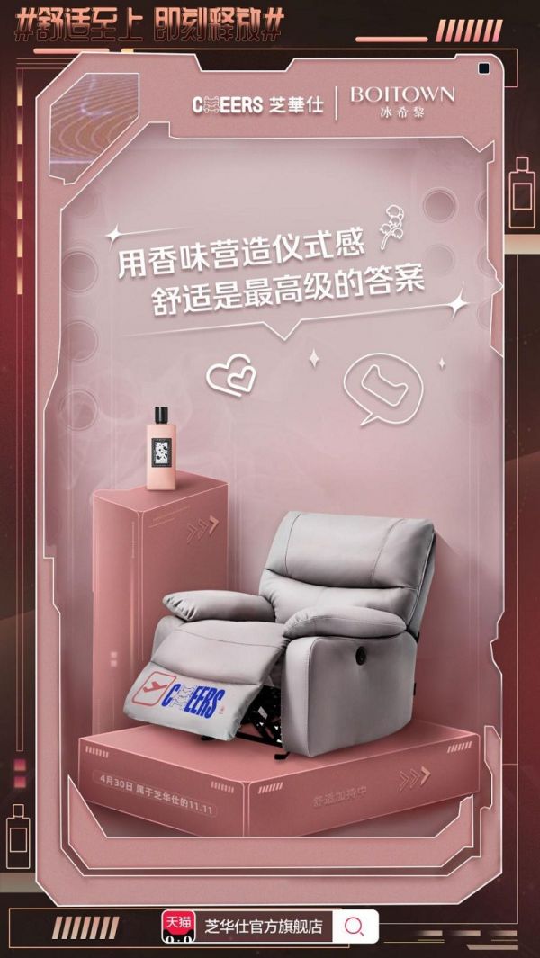 本次天猫超级品牌日,芝华仕的五感体验舱可以让消费者体验极米百寸大屏幕前享受视觉+舒适的极致释放;可以用雷蛇的耳机享受置身于音乐厅中的震撼体验;可以享受按摩仪带来倍轻松的极致舒适感;可以品尝来自农夫山泉旗下各系列特调饮品;可以在冰希黎品牌的淡雅香气环绕下感受全身心放松的舒适体验。通过这五感体验舱中的舒心享受,将芝华仕的“舒适至上,即刻释放“活动理念体现的淋漓尽致,充分获得了广大消费者的高度认同。
