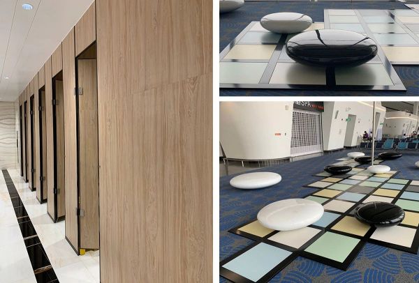 被誉为“新世界七大奇迹”之一的大兴机场就有装配式集成墙板的身影。作为装配式建筑装修部品,它在施工现场几乎不产生装修污染(粉尘、噪音、废料等),大大提高施工效率。同样在大兴机场,蒙娜丽莎-绿屋建科另一款达到国际先进水平的装配式建筑材料——夹层陶瓷复合板,以棋盘造型在机场二层东南角也构筑了一处亮丽景观——《弈趣》。