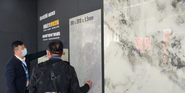 而绿色建材的美尔奇岩板,在资源、能源跨界融合,实现节能减排、清洁生产、绿色低碳,产生绿色化,打造建陶制造生态美的道路上不断进步。美尔奇岩板以重新定义“建筑岩板”为发力点,抢占装配式建筑内装饰行业的市场高点,系统全面推进“建筑岩板”的应用。展位上展示了760x2550x13.5mm,1200x2400x5.5mm,810x1410x5.5mm,810x2010x5.5mm,750x1500x10.5mm,800x2700x10.5mm规格,纹理含括大理石、布艺、砂岩、玉石,具有亮光面、哑光面、干粒面的表面触感,能满足各种设计要求,以期在雄安新区的建设上通过建筑岩板这个新品类,带来全岩定制应用的装配化装饰整体解决方案,加速布局装配式装修领域。