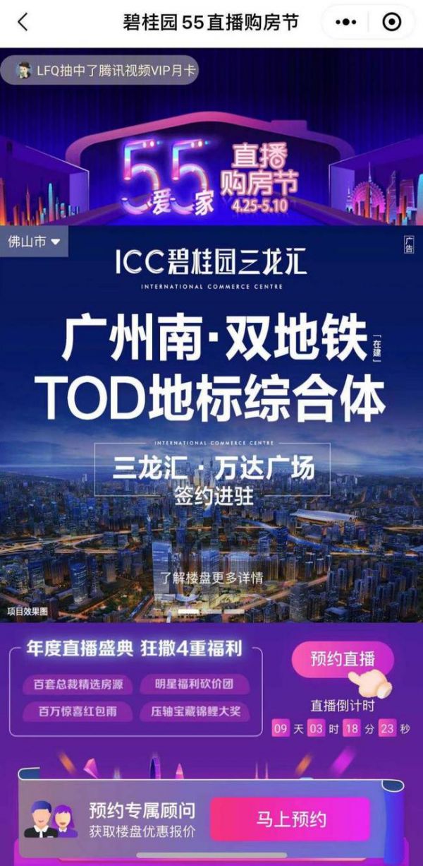 2020年碧桂园把握直播机遇,打造“5爱5家直播购房节”(下称“55购房节”),开启了“地产圈+综艺圈+直播圈”跨界合作,这种全新的营销方式与碧桂园的优质产品、超大优惠力度产生了爆款效应,使55购房节成为行业营销的标杆IP。2021年即将开启的55购房节,将进一步在优质房源、优惠福利、社交新玩法方面发力。