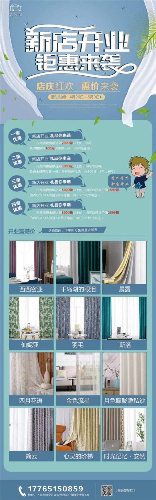 温馨Tip:顾客在活动期间下单,即可免测量安装费;相关详情请扫码加好友或拨打17765150859咨询!