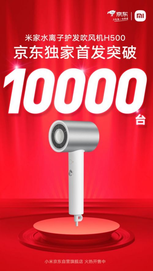 4月24日,米家水离子护发吹风机H500正式在京东独家限量首发,截止当日21点21分,已有超1万台吹风机完成付款,销售还在火爆进行中。