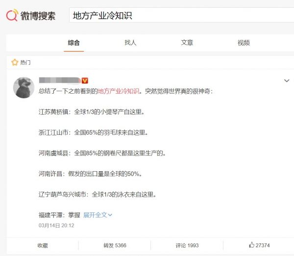 前阵子有人总结了一份“地方产业冷知识”在网络上火了,几乎没什么名气的小镇,却在某个品类里满足了全国甚至全世界超过一半的制造需求。