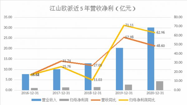 拉长时间线来看,作为国内首家上市的木门企业,江山欧派业绩近几年一直保持着稳健增长。