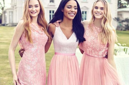 2、结婚作为一件喜事,来参加婚礼的人都会选择穿上比较喜庆颜色的衣服,所以这时候伴娘如果选择粉色的衣服出现在婚礼现场,也能够衬托婚礼整体喜庆的气氛,而且跟新娘子的婚纱非常搭配。