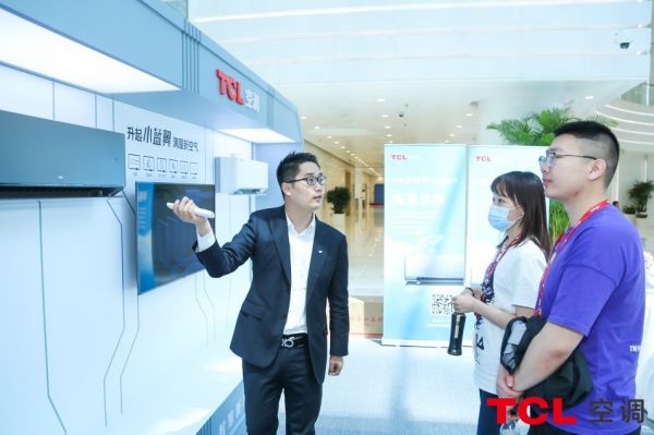 (产品讲师为京东白领讲解TCL智慧新风空调优势)