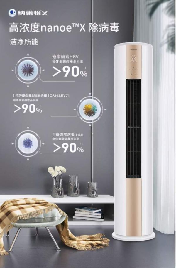 松下空调EJ1系列柜机,搭载了高浓度nanoe™X(纳诺怡)游离子净化技术,拥有20倍空气洁净力,能主动去除空气中的浮游菌、衣物附着菌,杀灭手足口病毒(CA16&EV71)、甲型流感病毒(H1N1)、以及单纯疱疹病毒(HSV),杀灭率均在90%以上,并且有效分解PM2.5中的有害物质(苯甲酸&十六烷)等,让全家净享健康洁净生活。除此之外,还有EJ2系列柜机,H1、D1、JX2、JW2等系列壁挂机均搭载納诺怡空气净化技术。
