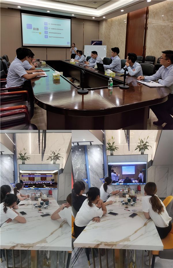 直播现场中,总部的销售团队及经销商家人们认真聆听。