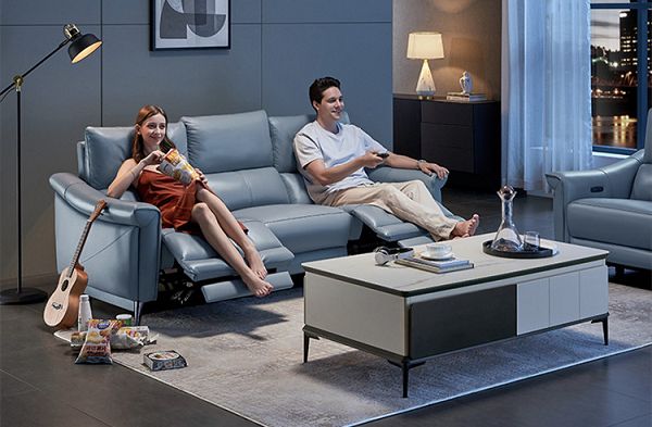 50611科技感沙发精选进口头层黄牛皮,冰岛灰和灰蓝色两色可选,外观时尚优雅,加上电动调控,将都市文艺风、酷炫科技范融为一体,满足每种生活状态,为浮躁环境中的都市人提供“治愈系良药”。产品可实现110°至160°自定义舒适角度,110°工作、125°阅读、140°追剧、150°美妆、160°补觉,五大功能自由设置,让生活更有趣味,带来更多惊喜;融合29年沙发研发经验,让每个下班回家的日子,都有安心的包裹抚慰;仿生曲线扶手设计,自然弧度似滑梯般顺畅而下,贴合恰到好处,优雅手到擒来;创新研发的7D加硅太空棉,加上针对肩、腰、臂、臀、大腿、小腿、脚踝七区的集成创新承托,软而不塌,让主人从头舒适到脚,如卧云端;行业高配400磅承重功能架,经得起时间检验,耐得住高频坐卧;三大功能躺位,隐藏式加长脚踏,让两人世界更温馨,让一家三口的日子更温暖;14CM轻盈高脚,视觉效果清爽又方便打扫,不留脏污;把它带回家, 在家也可享受“头等舱”的非凡待遇!