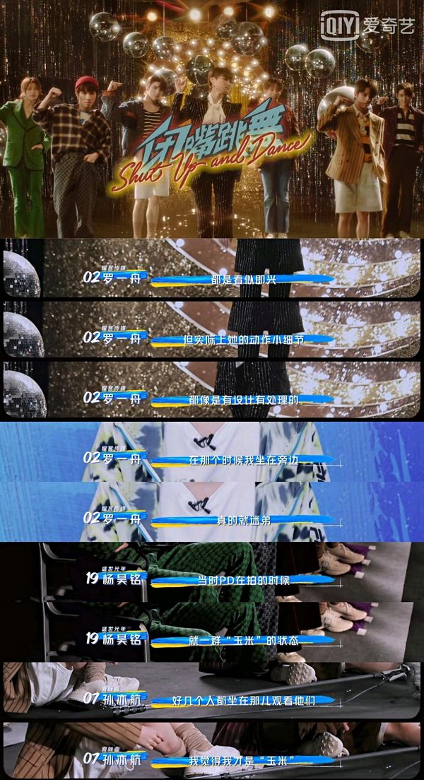 本期导师合作舞台,春PD与训练生李俊濠、罗一舟、孙亦航、孙滢皓、余景天、杨昊铭合作的舞台《闭嘴跳舞》,让人眼前一亮,印象深刻。李宇春全套复古造型加持,耸肩效果的银丝垫肩西服套装又飒又A。而魔性洗脑的旋律,“有点费脚”的舞蹈动作复古摩登,带现场所有人秒回70年代,更让训练生们展现了别样的舞台魅力。而MV拍摄期间春PD的暖心陪伴以及鼓励,还有完美的拍摄示范,更让训练生们直呼已经变身春PD的粉丝“玉米”!