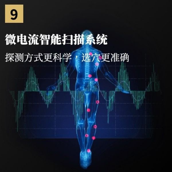 DCore按摩椅旗舰款DC-100C还具备微电流智能扫描系统,它能够通过微电流对每一个不同的使用者进行全方位的身体扫描,识别出身体各个部位的肌肉不适,从而为使用者制定相应的按摩计划,针对性地解决肌肉酸痛等问题,让按摩效果能够更精准,更高效,即使是体型不同的使用者,也能得到同样的高质按摩体验。