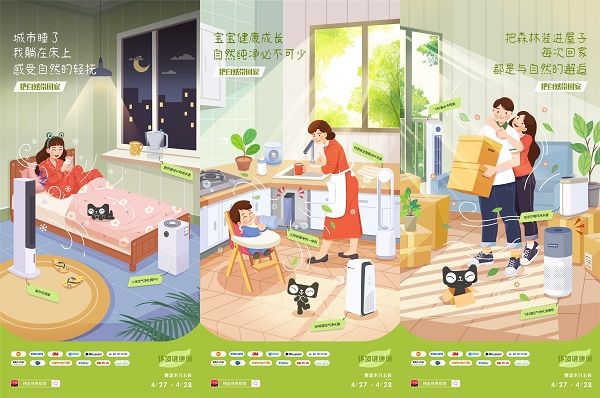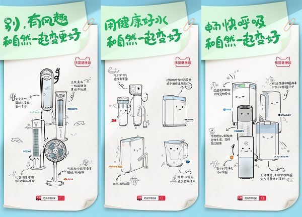 世界地球日当天,权威官媒联动品牌共同发声,以环保成绩单形式展现3大环境健康品类为环保献出的一份力,并联合微博2020十大影响力科普IP“柴知道”定制⼿绘科普视频,结合当下年轻消费群体最关⼼的环境健康问题,以趣味手绘形式演绎健康居家场景。同时,天猫官微宣发居家新态度,3大环境健康品类海报场景化演绎把自然带回家,吸引消费者在家拥抱自然,以家之名,和自然一起变更好。
