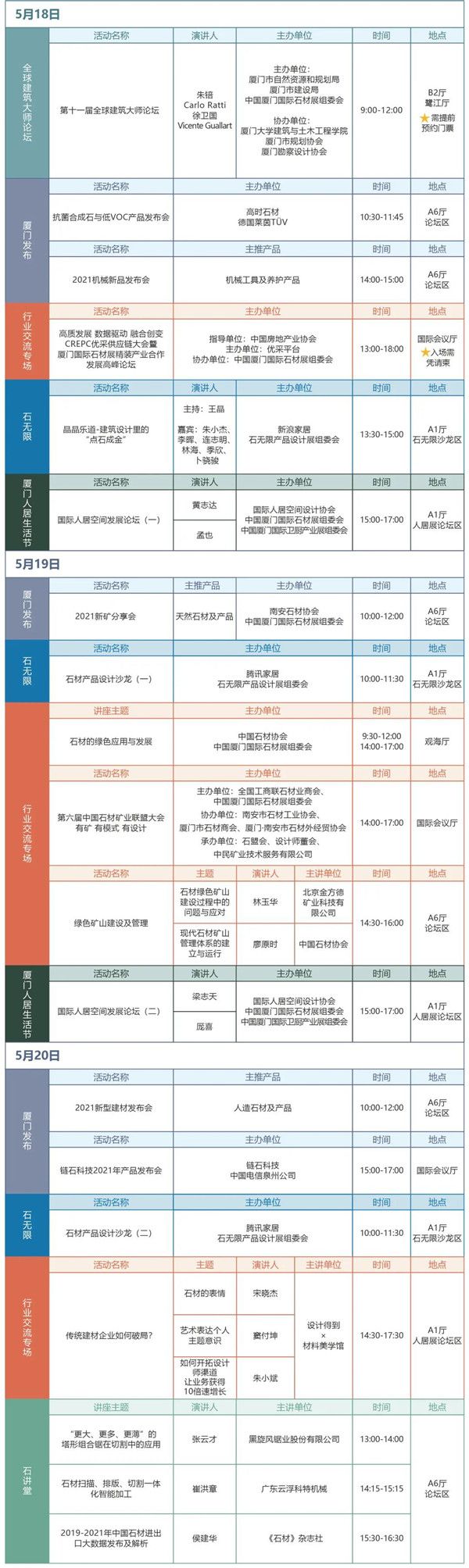 除星标☆活动外,均可凭中国厦门国际石材展览会展商证/参观证免费参加。