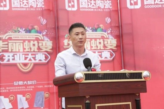 邯郸国达陶瓷董事长党跃辉先生上台发表精彩的致辞,首先,党总对现场所有的来宾表示感谢,全新旗舰店的开业,不仅满足邯郸消费者更高的产品选购需求,同时为邯郸消费者创造更舒适的生活空间体验。