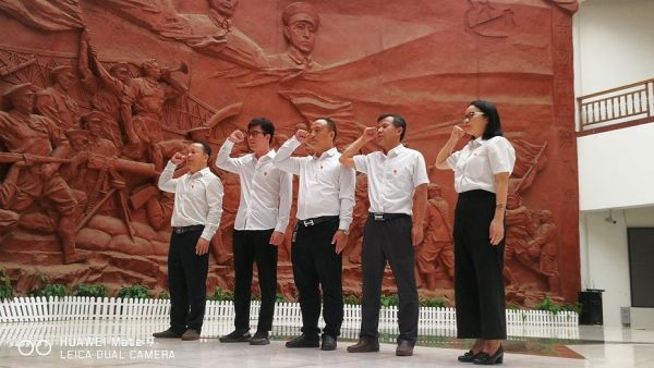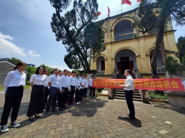 本次活动内容主要有三个部分。一是参观龙州起义纪念馆,首先全体党员的大门口党旗前进行了庄重入党宣誓,团员在团旗前重温了入团宣誓,然后跟随讲解员步伐了解1929年由邓小平同志领导的龙州起义的历史;二是参观中国工农红军第八军军部旧址,了解当年龙州起义开辟左江革命根据地在此“红军楼”发生过的革命故事;三是全体人员在第八军军部“红军楼”前召开党史学习教育动员会,动员会上支部书记着重传达了公司有关党史学习教育的文件精神,与会人员在动员横幅上签下了自己的姓名。