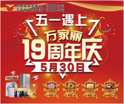 五一遇上万家丽19周年庆 抽30天免单、中30万巨奖!