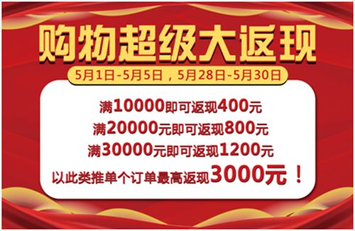 超级红包,千万返现。2021年5月1日-5月30日活动期间内,在万家丽家居生活广场&家居建材广场下定客户,即可参与6666元超级大红包抽奖!还有全场千万返现,最高可返3000元!