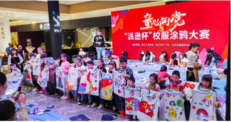 5月5日,派逊校服联合苏宁广场、久青教育在镇江举办童心向党——“派逊杯”校服涂鸦大赛。活动现场,小朋友们发挥想象力和创造力,拿起画笔在校服上尽情涂鸦,用色彩抒发爱党爱国之情。他们用天安门升国旗、火箭发射升空、宇航员遨游太空、动车飞驰等具有代表性的场景,向党和祖国表达了自己诚挚的祝福。