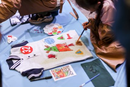 “小朋友,你的这件校服涂鸦的创作灵感是什么?”