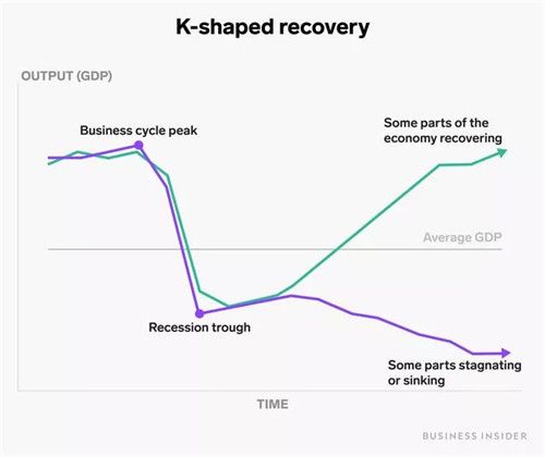 就在一年前的这个时候,摩根大通在名为《The shape of the recovery》(《复苏的形态》)的研究报告中,提出了著名的K型复苏理论。