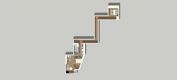 这是之前很火地“跑道户型",单从户型上来看比较奇葩,房子面积不大,却有条足足10m长的跑道,动线长,晚上起来上厕所恨不得骑辆车。不过从生活角度来看,主卧和次卧以及生活区域距离远,不管是白天还是晚上,休息都不会受到干扰,私密性也很好,不仅适合两代人居住,还很适合夫妻俩吵架后冷静,不过就冲着这么长的走廊,你敢买吗?