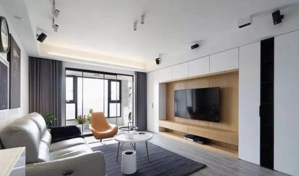 首次装修的房子做了比较浮夸的吊顶,中间配上一盏主灯,整个房子显得特别压抑。因此此次索性不做吊顶,不装主灯,让整个空间显得格外通透大气。双排座轨道灯+沙发边吊灯,使整个客厅的布局更加均匀柔和,更具实用性。