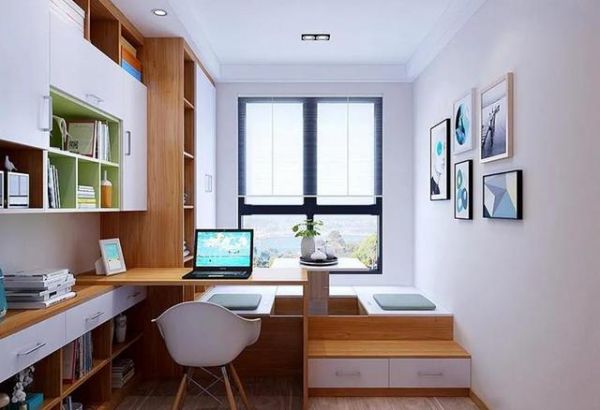 次卧窗的位置他用来做书桌+收纳柜一体式设计,窗前的书桌自然光线充足,能更好地保护眼睛,而书桌与收纳柜一体设计,让空间利用率大大提高,让空间存储功能得到满分。