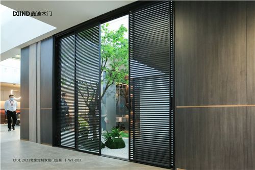 展会现场,我们带来了一款超高通顶门,门扇高度可达3米,摒弃传统的保守造型,以木制原材搭配金属铝套线,营造出丰富的空间层次感,视觉纵深感无限延伸。极窄边框设计时尚简约,金属镶嵌凸现轻奢感,潮流的内涵被演绎的淋漓尽致。