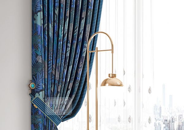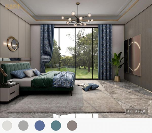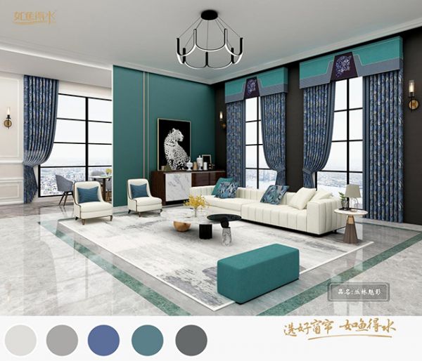 ➢窗帘色彩:浓郁的蓝绿色系很好的营造了舒适的睡眠空间,郁郁葱葱的丛林图案,营造出都市丛林的秘境,带你安然入梦。