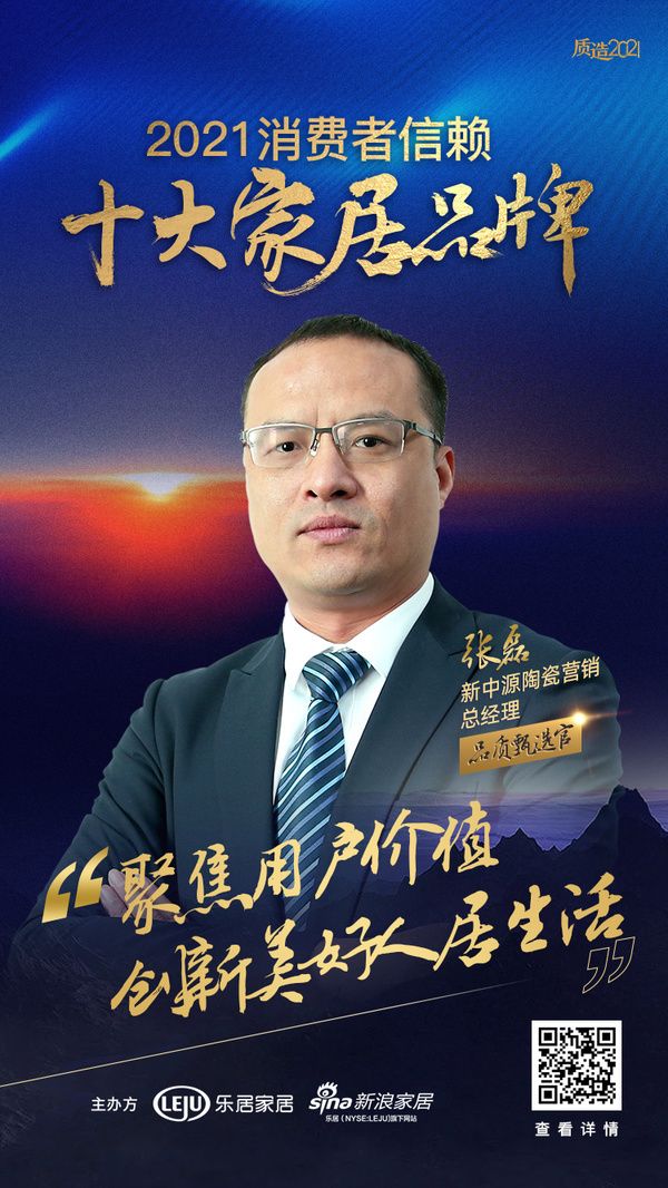 “聚焦用户价值,创新美好人居生活。”——新中源陶瓷营销总经理张磊担任「2021消费者信赖十大家居品牌-品类30强评选」活动特邀「品质甄选官」,以标杆企业代表的榜样力量传递品质精神,助力国人品质消费!为品质家居代言,为中国质造背书!