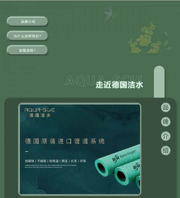 进入德国洁水(AQUA-SCIE)中国唯一官方网站的加盟合作板块,了解更多,期待您的加入!