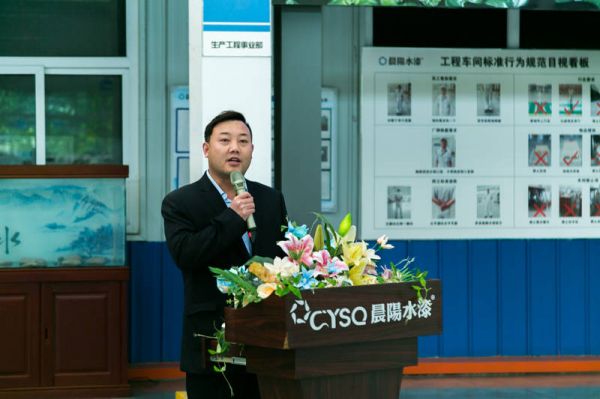 在宣誓、唱国歌仪式后,晨阳集团总裁刘占川发布了激情洋溢的讲话,他表示:回首过往,晨阳人敢为人先,弃油向水打造中国水漆第一品牌,晨阳水漆赢得了行业追随,政府支持和民众的广泛认可。