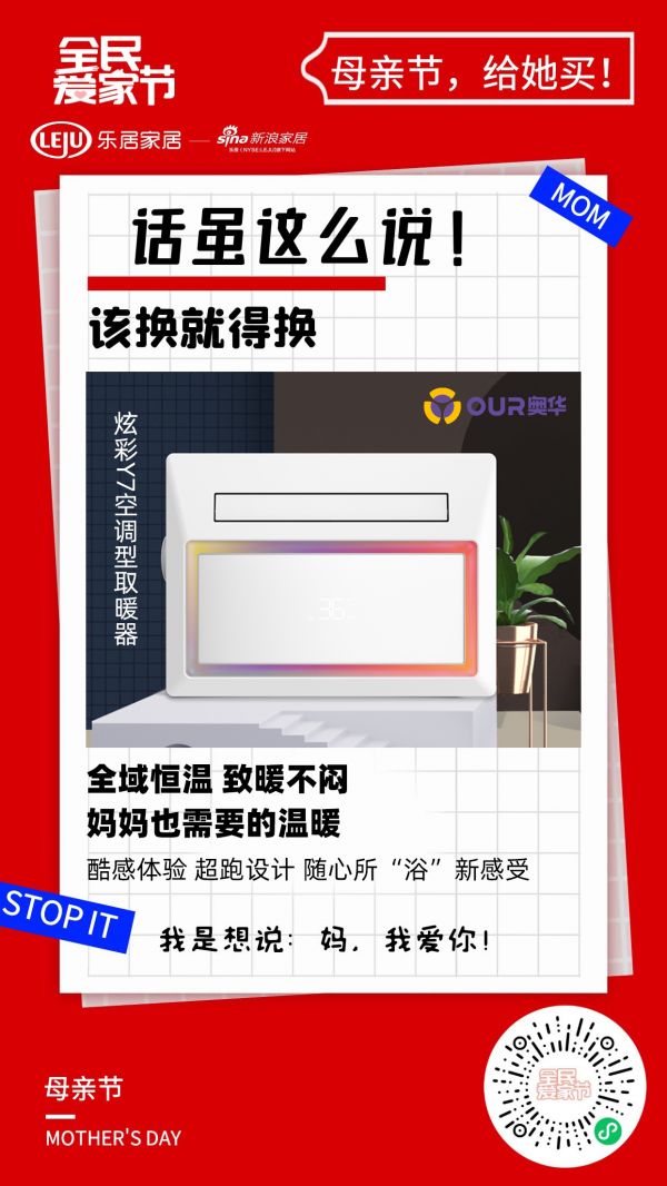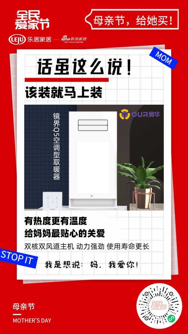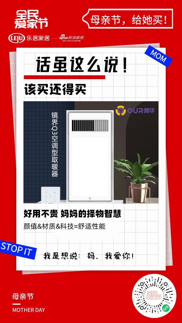 为营造和谐美好生活,5月9日,“中国人新家观-母亲节告白”行动正式启动。这个母亲节,新浪家居携手奥华一起,倾听那些爱的“吐槽”。