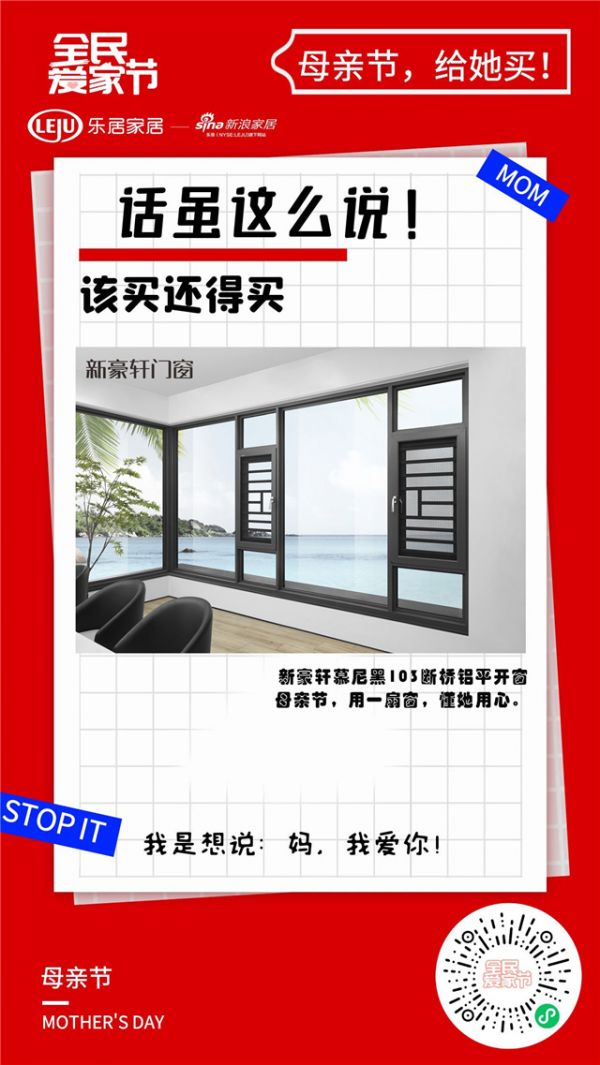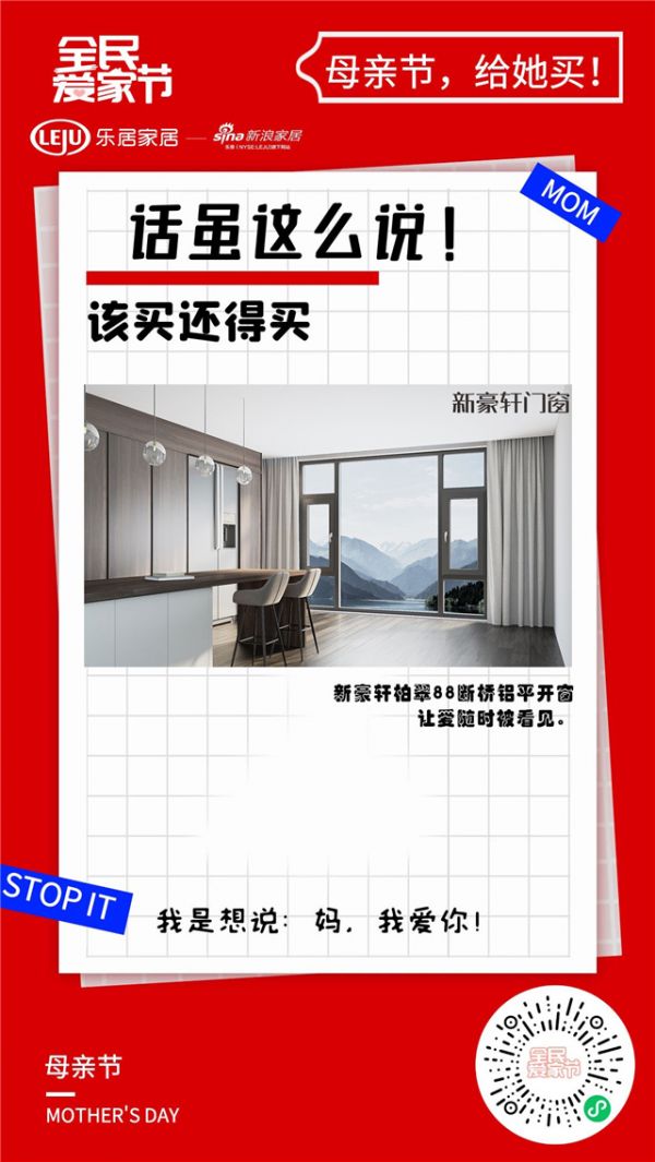为营造和谐美好生活,5月9日,“中国人新家观-母亲节告白”行动正式启动。这个母亲节,新浪家居携手新豪轩门窗一起,倾听那些爱的“吐槽”。