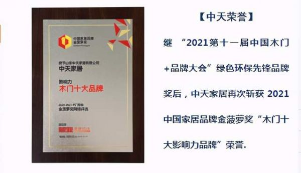 实力认证│中天家居斩获 “木门十大影响力品牌”荣誉!