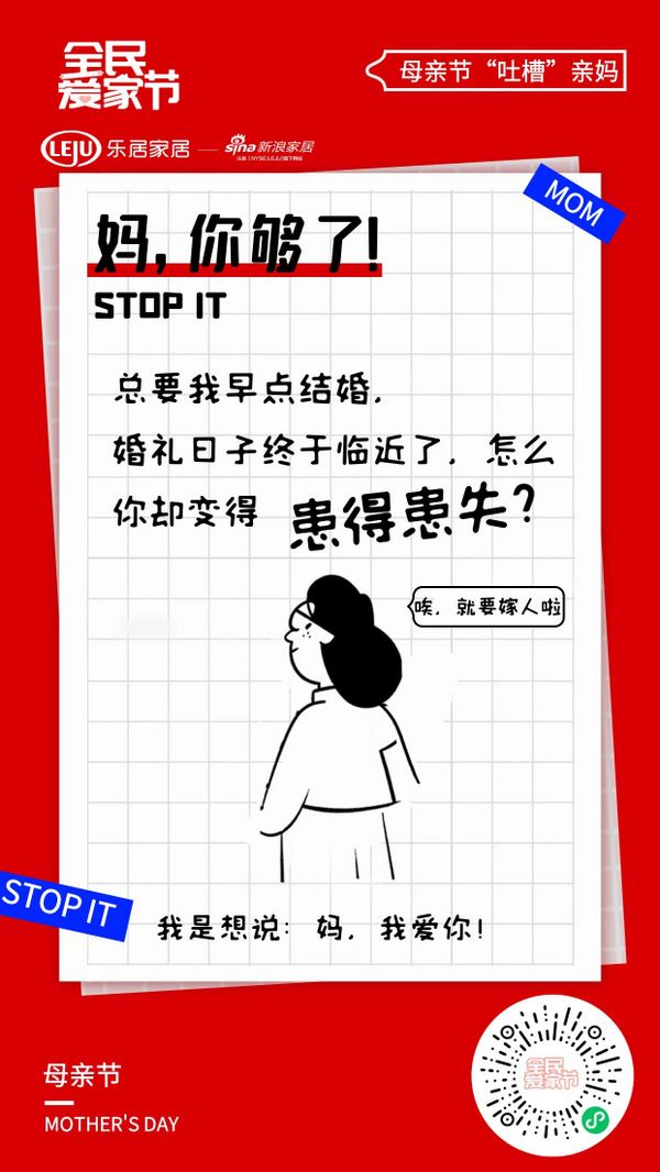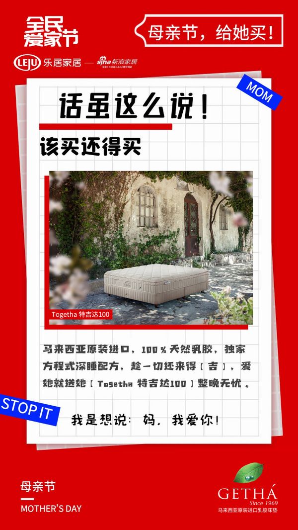 为营造和谐美好生活,5月9日,“中国人新家观-母亲节告白”行动正式启动。这个母亲节,新浪家居携手Getha吉达一起,倾听那些爱的“吐槽”。