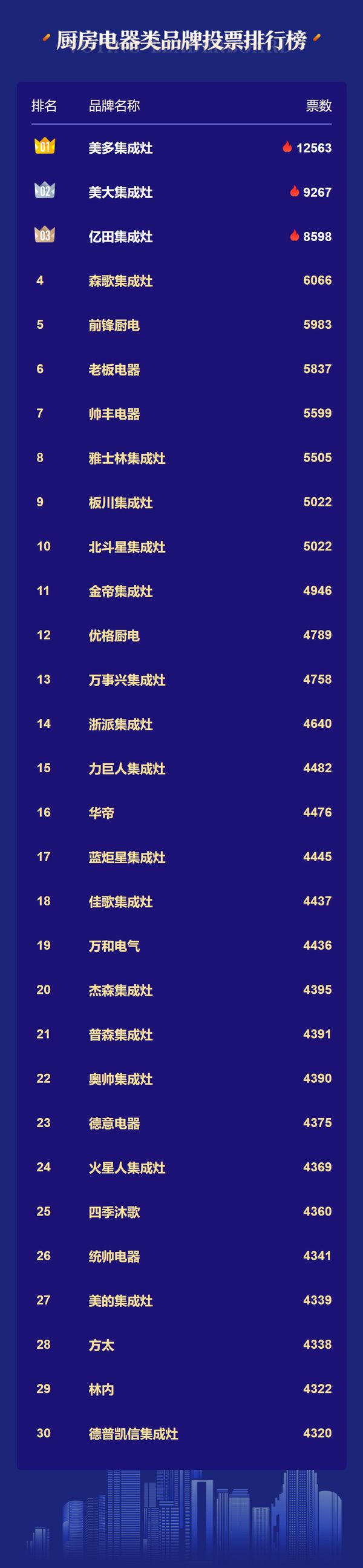 票选DAY2|三大品类总票数突破56万,集成灶品牌强势领衔厨电类TOP30