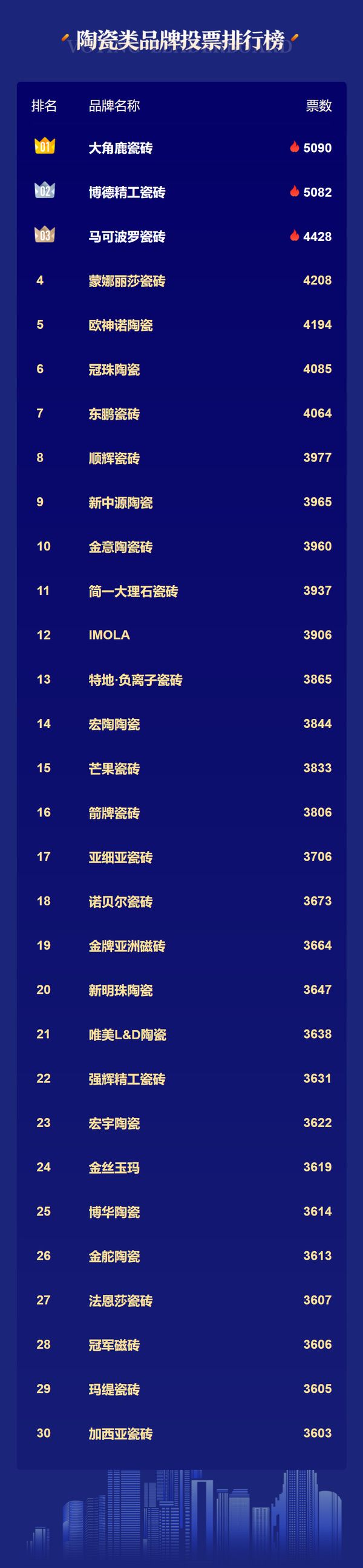 第二日陶瓷类品牌30强榜单