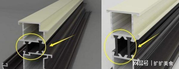 区别二:铝材的稳定性比厚度重要。上图右边的铝材更厚,但是中间的尼龙断桥却厚很多,这样的话稳定性就变差了,没有左边的稳定性好,特别是高层的住户,稳定性好的才是最安全的。