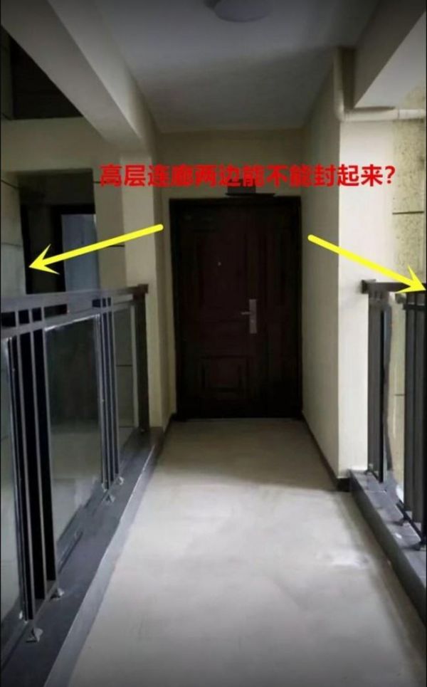 最近看到一则报道,说的是高层带连廊户型的边户,私自将连廊两侧封了起来,把连廊公共区域当成了自家空间用!结果遭到中间户的不满,并且联名举报到物业,纷纷谴责边户做法自私又自利!物业也勒令边户拆除,这下子不仅邻居没得处了,还导致边户不必要的经济损失。这个报道一处,很多人都抱有不同的看法,有人说支持中间户的做法,毕竟这属于公共区域,不能太自私,但也有的人支持边户的做法,毕竟是自家门前,想咋弄也不影响别人!但真的不影响吗?连廊真的可以封起来吗?今天我特意找到我们小区的物业人员询问了这个事,物业给出的答案我觉得非常合理!