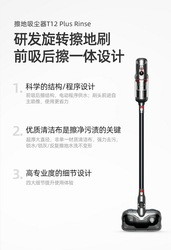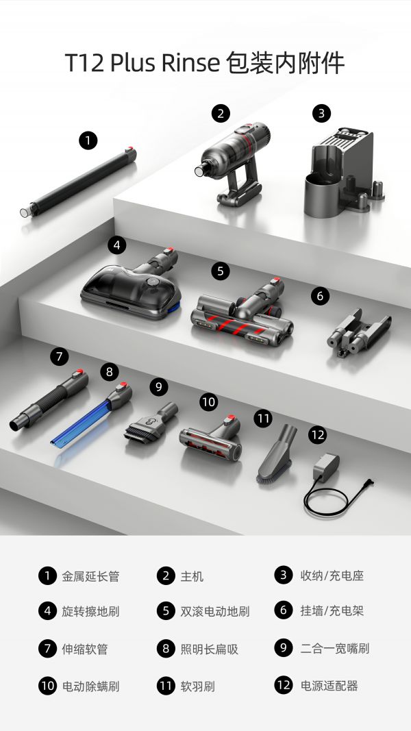 在众多配件中,要特别提及下双滚电动地刷,该刷头将地板刷与地毯刷集成在一起,各种地面材质均可用其清洁,是一款同样高效的清洁刷头。小狗T12 Plus Rinse擦地吸尘器可以满足多元化的家居场景,可以说是一套工具搞定所有。这一点,也是钟丽缇特别推荐的地方。