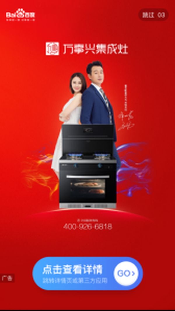 除了搜索集成灶十大品牌外,百度APP的开屏广告也是万事兴集成灶的一片红!作为全球最大的中文搜索引擎、最大的中文网站。根据第三方权威数据,在中国,百度PC端和移动端市场份额总量达73.5%,覆盖了中国97.5%的网民,拥有6亿用户,日均响应搜索60亿次。
