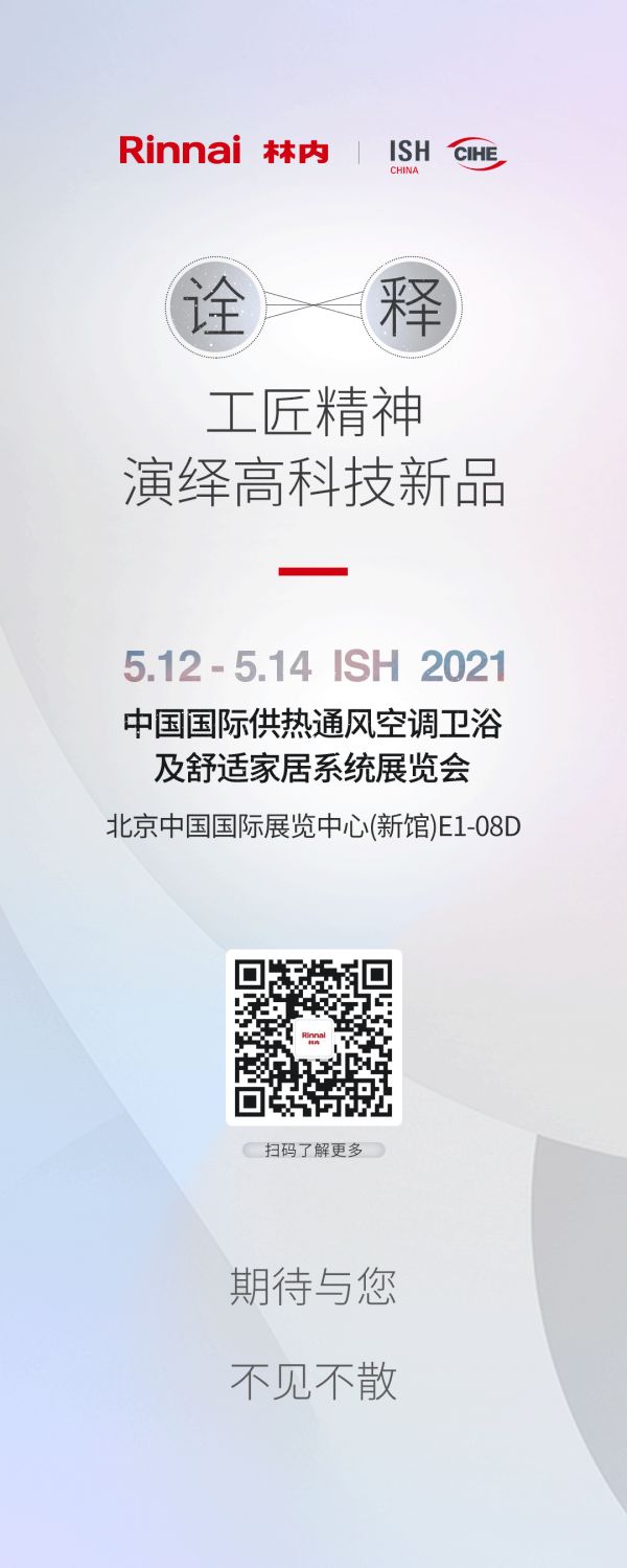 2021年5月12日至14日,中国国际供热通风空调、卫浴及舒适家居系统展览会(以下简称“ISH”)将在北京中国国际展览中心(新馆)火热开启。作为亚洲最具影响力的暖通技术与设备领域盛会,ISH参展规模超过11万㎡,汇聚1300+知名展商,堪称2021舒适家居行业风向标。