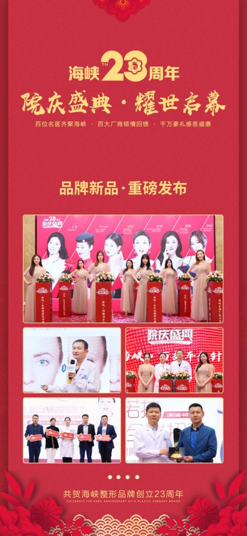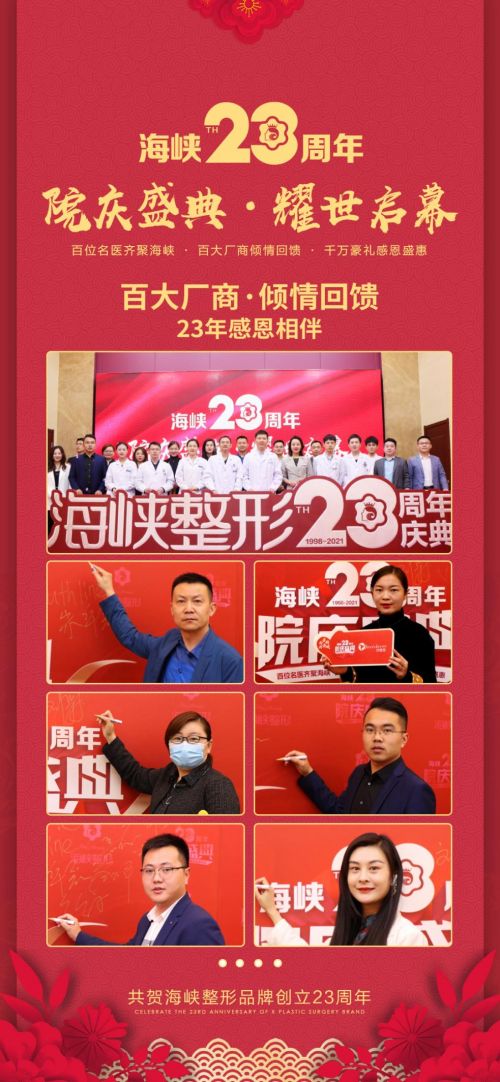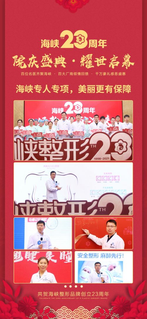 2021年5月,海峡整形23周年院庆盛典盛大启幕,济南海峡美容整形医院伴求美者美丽之旅始终,匠心塑美一如初心,院庆献礼释放美力。海峡整形23年对美极致苛求;23年璀璨历程,引领医美新飞跃!济南海峡以此作为对品牌23周年的献礼以及对广大爱美者的感恩回报,千万豪礼感恩钜惠,更多惊喜福利来袭!