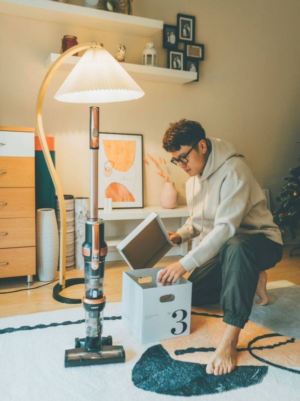 其次就是特别喜欢它可以随时直立摆放的功能,这样我就可以在清洁地面的时候随时随手停下整理物品,不用找地方倚靠,把整个屋子收拾得干干净净。
