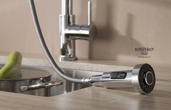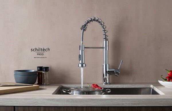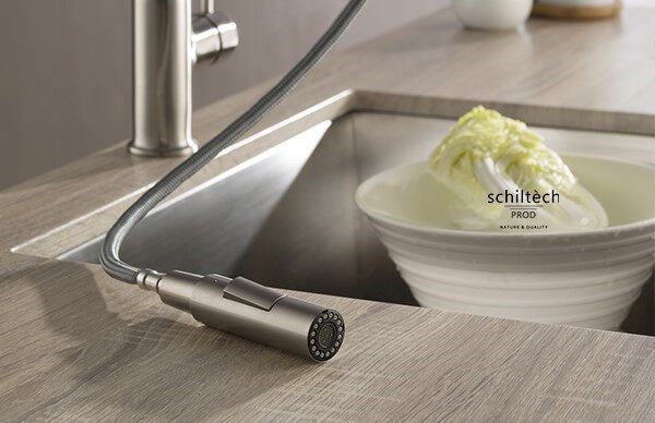 按钮一键切换出水开关,360度旋转出水嘴,两种出水方式:水柱与花洒。我们的厨房水龙头不仅提升了您的工作乐趣,而且成为了视觉亮点。Schiltech-prod的厨房水龙头既有经典镀铬表面闪闪发亮,也有拉丝并且高温耐腐蚀的釉面处理工艺。采用长而圆润设计的单把手确保符合人体工学的操作。