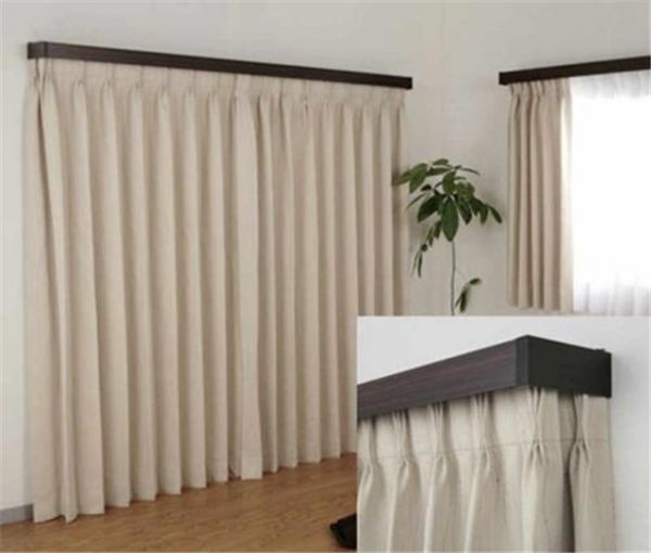 外挂式窗帘盒:外挂式窗帘盒,又称外盖式窗帘盒,顾名思义,就是设计在窗户上方的窗帘盒,一般是在窗户上方打造一条凸起的长条盒状物,用于安装窗帘滚轮。这样的窗帘盒更多的装饰在无天花板的室内,或者是希望窗帘盒造型简约的人家也会选择这种窗帘盒。这里需注意的是,施工时需要注意窗帘盒的尺寸,如其宽度必须比窗户宽,若与窗户齐宽的话,窗帘可能无法完全遮光,出现漏光、漏缝的现象。